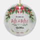 Cute wedding Anniversary Christmas Ceramic Ornament. A beautiful stylish inexpensive gift for couples. It’s an elegant wedding anniversary keepsake that can be personalised with your special anniversary information.