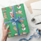 Cute and fun western themed cowboy cowgirl country Chrismas paper. Makes for festive holiday wrapping. Design includes cowboy boots and hats< santa, snowmen, gingerbread men, stockings, Christmas lights, candy canes, holly berries and hot chocolate. Green background.