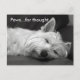 These are beautiful cute Westie (West Highland White) Terrier dog postcards. The image shows a beautiful Westie dog fast asleep with the wording 'Paws...for thought' at the top left hand corner. Great to send for any occasion.
