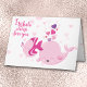 An adorable pink whale and a matching pink fish swim while spouting pink and purple hearts on the front of this Valentine's Day card. The pink text says "I Whale always love you." The images and text are placed on a background of soft pink floating hearts. The inside has a repeat of the floating hearts, with your custom text. *Thanks to Pretty Graphic Design for the images used in this design.