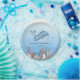 This cute birthday party paper plate features a cute watercolor whale and nature coral reef under the blue sea with trendy typography. Personalise the birthday party paper plate by adding your child's name, age, and party date. Matching Items in our shop for a complete party theme.