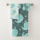 Cute Whale Pattern on Teal Blue Kids Bathroom Bath Towel Set