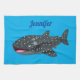 Cute whale shark happy cartoon illustration tea towel