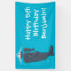 Cute whales and sailing boat cartoon illustration banner