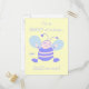Sweet cuddly little baby bee in pastel colours is featured on this cute, funny, customisable, affordable baby's first birthday party invitation template postcard Perfect for either a girl's birthday party or a boy's 1st big bash!