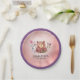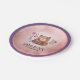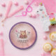 This cute girl's birthday party paper plate offers a watercolor graphic of a brown bear accented with pink and purple flowers. Personalise this whimsical child's party plate with the child's name.