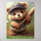 Cute Whimsical Bear Playing Baseball Personalised Poster