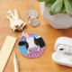 Cute whimsical cow keychain. Our keychain designs make the perfect gift or stocking filler for any cow lover! Artwork features a sweet faced black and white cow with brown eyes peering over pink stripes. Artwork © Lisa Marie Robinson. All Rights Reserved.