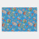 Cute whimsical blue Christmas wrapping paper sheets set of 3.