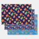 Cute whimsical blue Christmas set of 3 Wrapping Paper Sheet