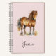 Cute kids notebook in light pink with a watercolor drawing of a cute brown horse and custom name in whimsical script.