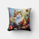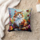 Cute Whimsical Cat, Flowers and Butterflies Cushion