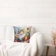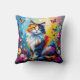 This throw pillow has cute whimsical colorful folk art cats sitting in flowers and surrounded by butterflies done in an impasto style.