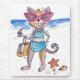 This is a mixed media painting of a whimsical cat in sunglasses on the beach.