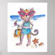 This is a mixed media painting of a whimsical cat in sunglasses on the beach.