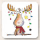 This is an original mixed media painting of a whimsical Christmas moose tangled in Christmas lights.