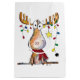 This is an original mixed media painting of a whimsical Christmas moose tangled in Christmas lights.