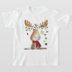 This is an original mixed media painting of a whimsical Christmas moose tangled in Christmas lights.