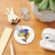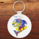 This is an original mixed media painting of a colourful, whimsical shark in a float.