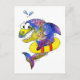 This is an original mixed media painting of a colourful, whimsical shark in a float.