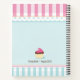 A cute whimsical spiral notebook to add your favourite recipes, cakes, cupcakes, desserts and more, in pink and blue stripes that give it a bakery look.