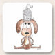 This is an original mixed media painting of a whimsical annoyed dog with a cat on his head.