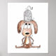 This is an original mixed media painting of a whimsical annoyed dog with a cat on his head.