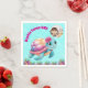 Cute Whimsical Floral Sea Turtle Photo Birthday Napkin