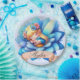 Cute whimsical floral sweet dreams sleeping fairy wearing a flower crown with a blue background.