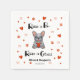 Enhance your wedding decor with our cute whimsical French Bulldog wedding napkin, personalised for your special day. Featuring an adorable French Bulldog holding a red heart, surrounded by playful hearts, stars, and dog paws, this napkin is perfect for pet lovers. The charming cartoon style and decorative typography add a touch of fun and warmth to your table setting. Personalise with your names and wedding date to make it uniquely yours. Part of our matching collection, this napkin ensures a coordinated and cohesive look for all your wedding stationery. Choose this delightful napkin to showcase your love for each other and your furry friend, making your wedding truly unforgettable.