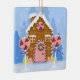 Adorable blue Christmas ornament featuring a whimsical gingerbread house .