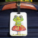 Cute Whimsical Green Frog on Toadstool Luggage Tag