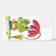 This is an original mixed media painting of a whimsical green frog sitting under a red flower.