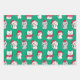 Cute Whimsical Green & Red Cartoon Cat Christmas Wrapping Paper Sheet