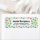 Return address labels with a pattern of hand-drawn whimsical birds. Cute little green pine trees between them.