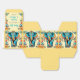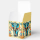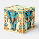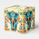 Cute whimsical Indian wedding elephant thank you favour gift box, ornate teal blue boho retro groovy style favour gift box, good for wedding candy, can fit about 20 coated almonds.