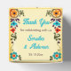 This is a great product. I am going to have this in front of each place setting at the Rehearsal Dinner to simply thank them for being our guest. Beautifully! Simple and Elegant. The colors were exactly the same and it is going to be a wonderful addition to the table settings.