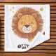 This personalised wash cloth features a cute whimsical playful drawing of a smiling lion with a funny oversized head.