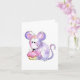 This is an original mixed media painting of a whimsical purple mouse with a pink cupcake.