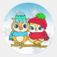 Cute Whimsical Owls on Branch Christmas Classic Round Sticker
