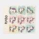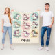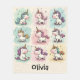 This personalised kids' fleece blanket features a set of sketched unicorn doodles in a whimsical, playful style with cheerful expressions set against pastel-coloured backgrounds.