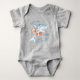Cute whimsy baby shark in a lifesaver rubber ring romper or baby t-shirt reads birthday shark doo doo doo doo doo doo or personalise with your own words. Ideal for a cute 1st or 2nd birthday gift. Other matching items available. Print is taken from an original whimsical watercolour painting by Sarah Trett for www.mylittleeden.com