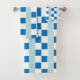 Cute White Blue Chequerboard Bath Towel Set. Checks Checked Chequerboard Chequered Pattern.