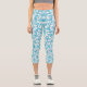 Cute white blue seamless spring flowers patterns capri leggings