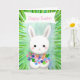 Cute White Bunny Rabbit Custom Text Happy Easter Card
