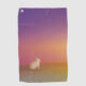 Cute White Bunny Rabbit on Grassy Hill at Sunrise Golf Towel