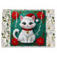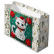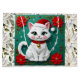Cute White Cat and Poinsettia Christmas Large Gift Bag