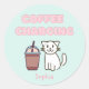 Cute White Cat&Funny Coffee Caffeine Pastel Classic Round Sticker