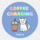 Cute White Cat&Funny Coffee Caffeine Rainbow Class Classic Round Sticker