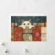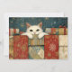 Cute White Cat Peeking over Christmas Gifts Holiday Card